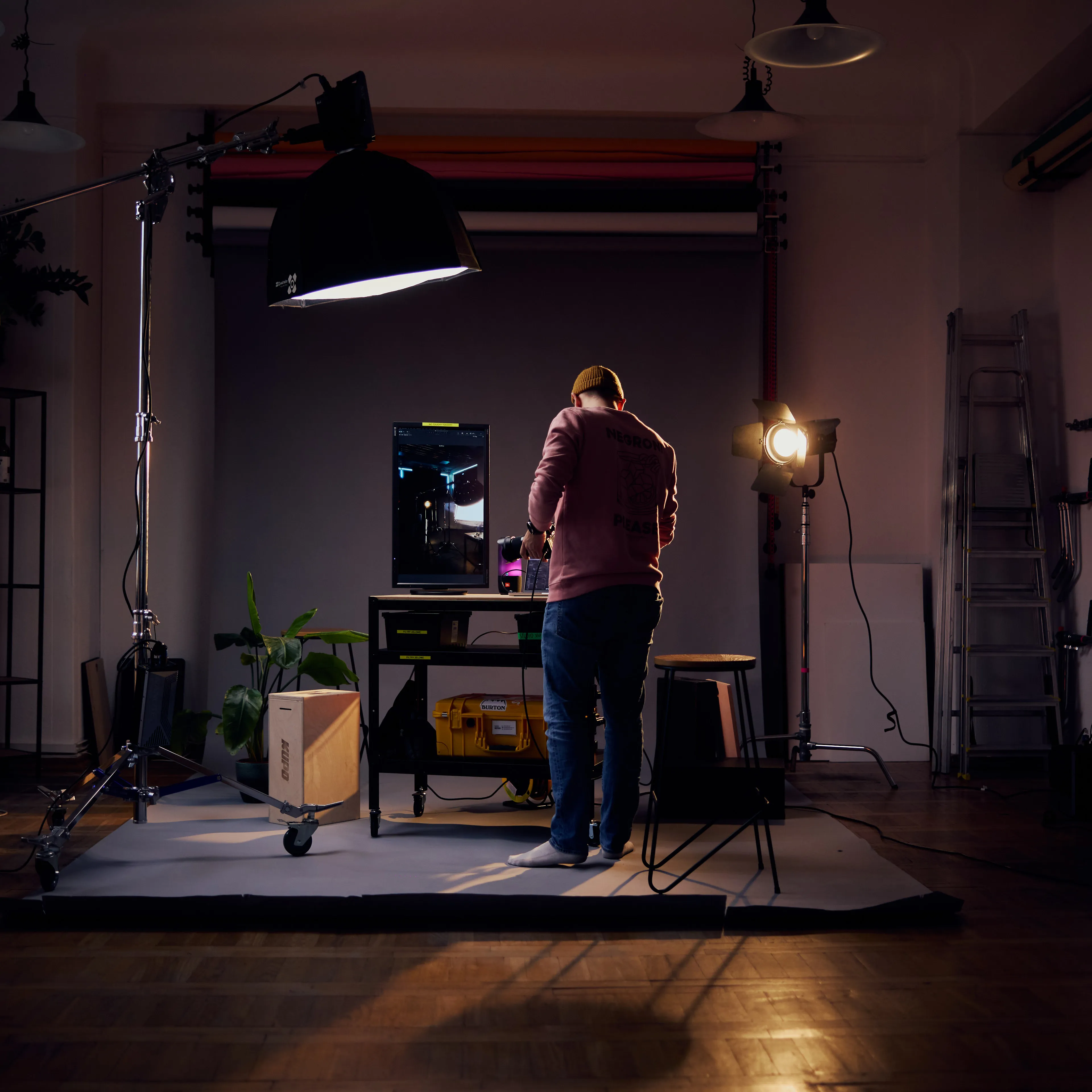 Studio idealnie nadaje się na wszelkiego rodzaju produkcje fotograficzne takie jak sesje biznesowe, produktowe, reklamowe czy kreatywne. Z powodzeniem realizowane były w nim długie filmowe dni zdjęciowe kursów, realizacji contentu dla marek, reels-ów czy teledysków. Dzięki stabilnemu łączu światłowodowemu bez problemu można wewnątrz realizować transmisje na żywo, webinary czy na bieżąco przesyłać materiały. Przestrzeń jest modułowa, większość rzeczy można przestawić i zaadaptować ją odpowiednią scenografią. Dodatkowo - z uwagi na parterowe położenie studia możliwe jest oświetlanie go poprzez okna - zapewniając regulowane i w pełni kontrolowalne "słońce".